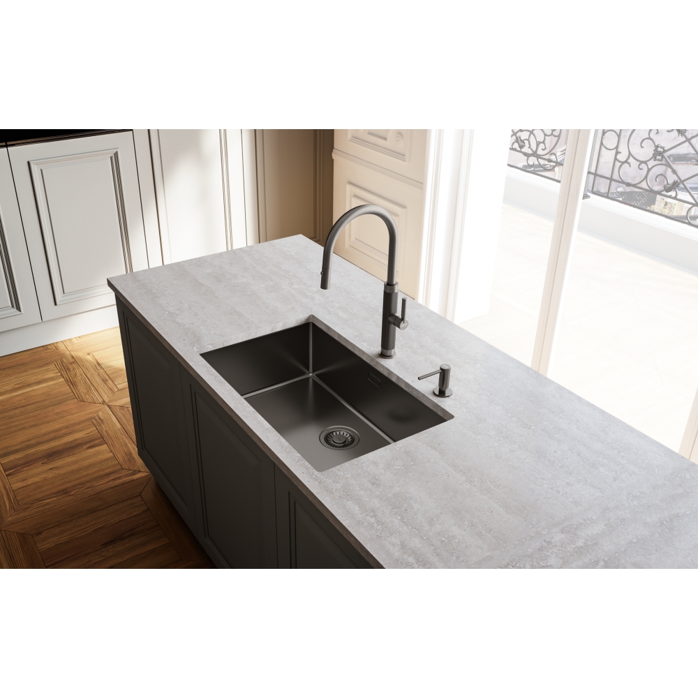 MYTHOS MASTERPIECE Hochwertig beschichtetes Edelstahlbecken mit schmalem 12mm Beckenradius Passende Farbkombinationen mit unseren Armaturen und Zubehör möglich 3-in-1 Einbaumöglichkeiten: Slimtop, Fächenbündig und Unterbau wählbar mit Druckknopfventil oder Handbetätigung Planungshinweise: Beckenaußenmaß: 725x450mm Becken: 685x410x200mm Arbeitsplattenstärke: mind. 12mm Ausschnitt Slimtop: 695x420mm R10 Ausschnitt flächenbündig: siehe Montageanleitung Ausschnitt Unterbau: nach Montageanleitung Lochbohrung Druckknopf Ø35mm Lieferumfang: inkl. Ablaufgarnitur & Bodengitter