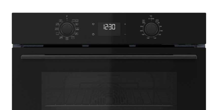 - Heißluftbackofen mit 12 Funktionen (9 traditionelle, 3 Automatik-Programme)