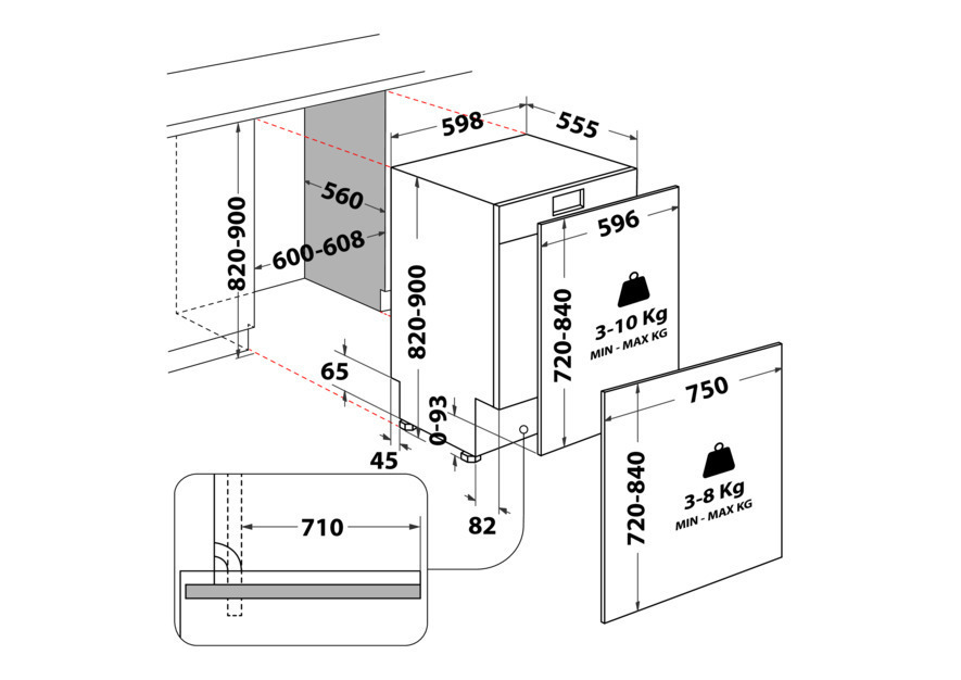 | Nischenhöhe minimal: | 820 |
