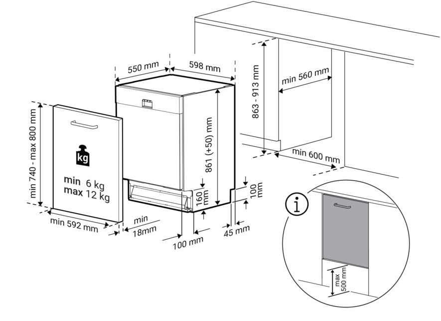 - Vollintegrierbarer Geschirrspüler (60 cm)