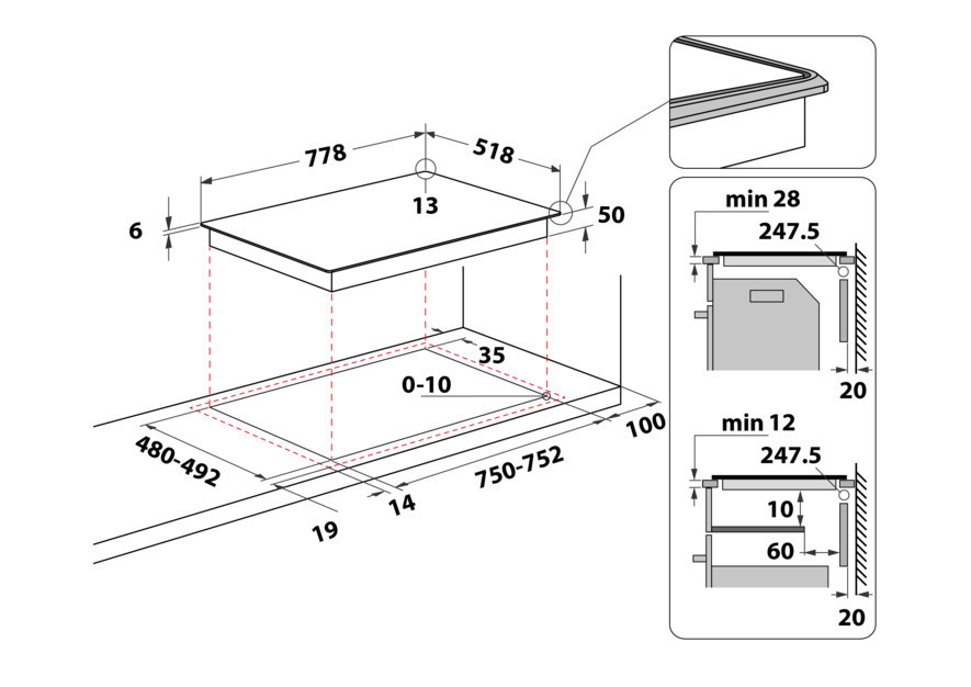 | Abmessungen der 6. Kochzone: | Nicht zutreffend |