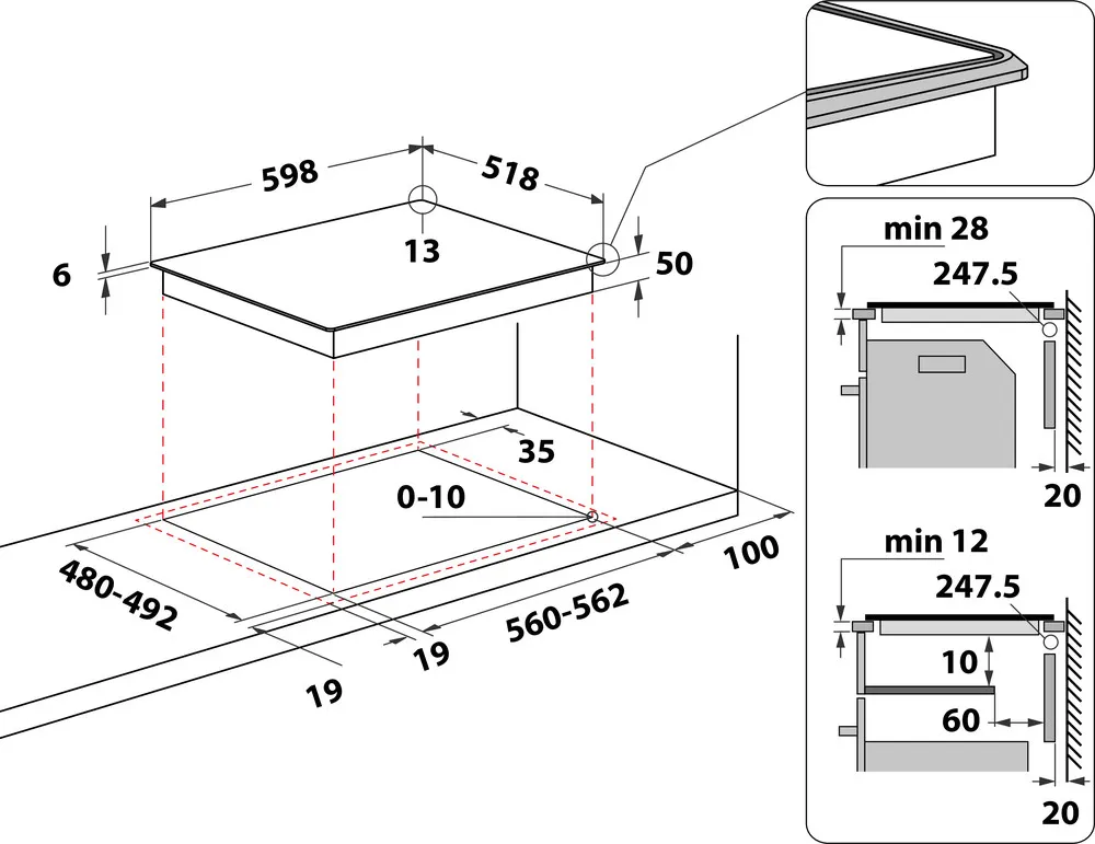 | Abmessungen der 6. Kochzone: | Nicht zutreffend |