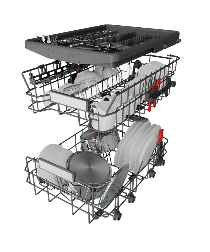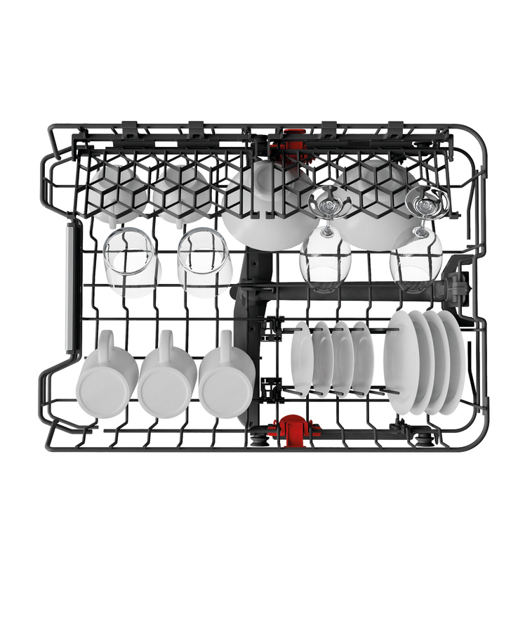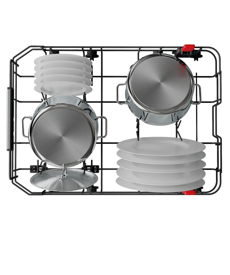 - 4 umklappbare Tellersegmente im Unterkorb