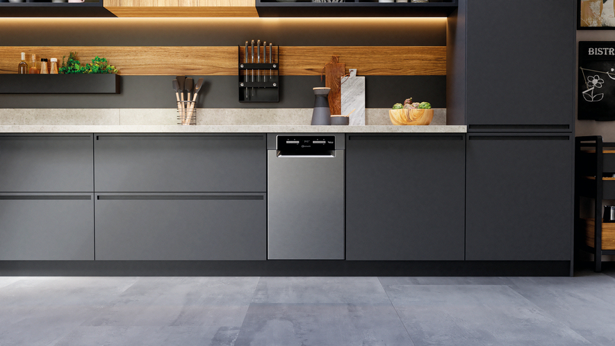 - Energieeffizienzklasse E, Reinigungsleistungsindex 1,13, Trocknungsleistungsindex 1,07