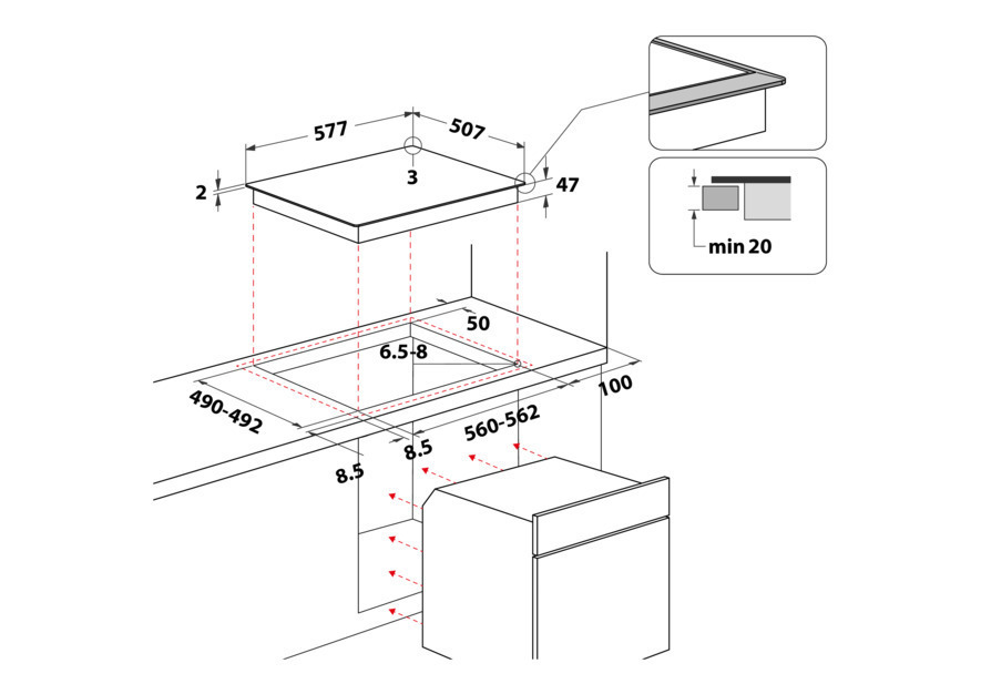 - Ausschnittmaße (BxT): 560x490 mm
