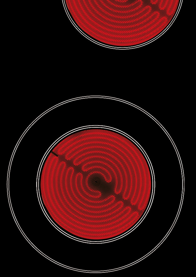 4 Kochzonen, davon 1 Bräter-ZweikreisKochzone, 1 DUO-ZweikreisKochzone