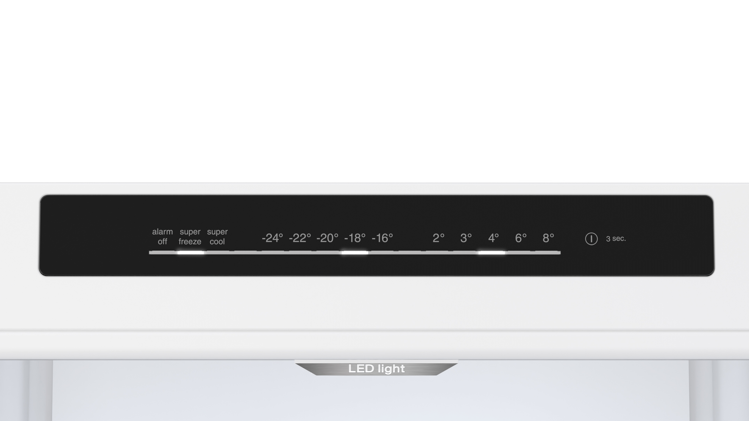 Automatisches Super Gefrieren: schnelles Einfrieren kleinerer Produktmengen während, bereits Gefrorenes nicht auftaut. Dank Temperaturanstiegserkennung und Senkung.