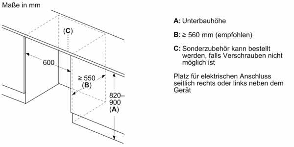 | Nischenbreite minimal: | 600 mm |