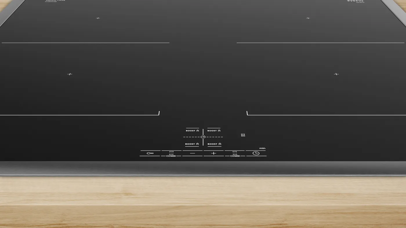 Die CombiInduction Kochstelle: platzieren Sie großes, ovales oder rechteckiges Kochgeschirr auf zwei zusammenschaltbaren Kochzonen.