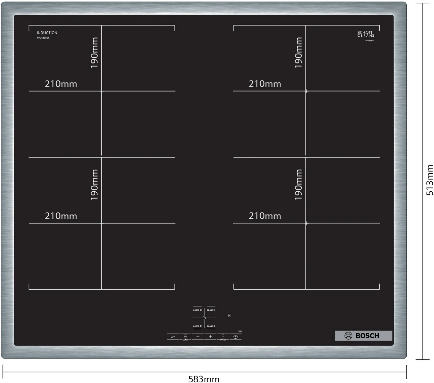- PowerBoost-Funktion für alle Kochzonen: Mit 50 % mehr Leistung z. B. Wasser schneller zum Kochen bringen als auf höchster Leistungsstufe.