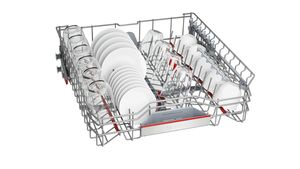 3-fach Rackmatik: Auch mit voll beladenem Oberkorb in 3 Stufen bis zu 5 cm höhenverstellbar.