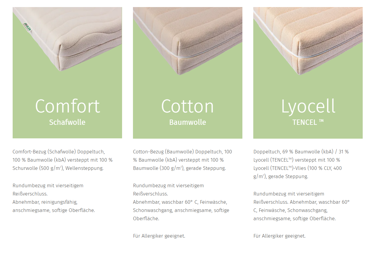 Ab einer Matratzenbreite von 180 cm erfolgt die Lieferung als zwei Einzelkerne im Trikot-Unterbezug und dem Matratzenbezug separat.