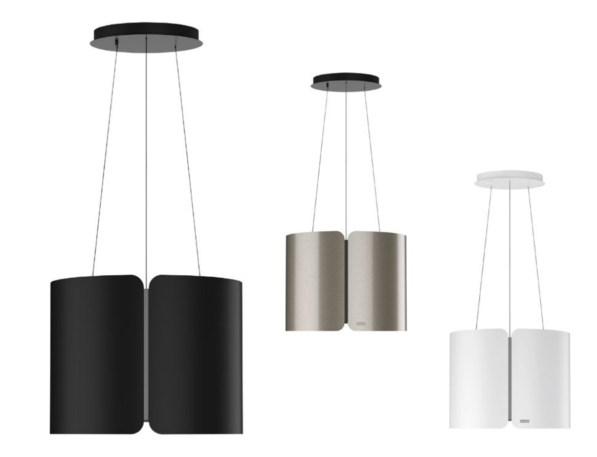 SMART SUSPENDED Ø 42 cm, Farbe Black Matt Inselhaube im Umluftbetrieb Minimalistisches Design mit zwei nebeneinander angeordneten Paneelen Leicht zu reinigende Oberflächen Planungshinweise: Gesamtanschlusswert: 272W 345.0654.933 Beleuchtung: LED Spots, 2x1W, 3.000 K, Warmweiß Anzeigenfarbe: Grün, Orange und Rot Metall-Fettfilter spülmaschinengeeignet Aktivkohlefilter im Lieferumfang enthalten Sicherheitsabstand zum Kochfeld: mind. 65 cm