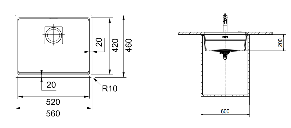 MARIS Geradliniges Design mit großem Beckenvolumen Spezielle Version mit gefrästem Rand für optimalen Unterbau Mit Sanitized® behandeltes Material für eine besonders hygienische Oberfläche Modernes Design mit klarer Symmetrie und schmalem Beckenradius. Spektakulär großes Beckenvolumen, das den Platz im Unterschrank optimal ausnutzt. Der besonders schmale Beckenrand fügt sich nahtlos in jede Küche ein. Inklusive radial gebürsteter runder Edelstahl Abdeckkappe für den Ablauf. Das Material Fragranite zeichnet sich durch seine hervorragende Hygiene und einfache Reinigung aus. Planungshinweise: ab 60 cm Unterschrank unterbaubarBlack Matt - Black Collection mit schwarzem 3 1/2" Excenterventil oder als Handbetätigung verdeckter ÜberlaufBeckenaußenmaß: 553x433mm Becken: 520x400x200mmAusschnitt Unterbau: 520x400mm R20 Lieferumfang: inkl. Ablaufgarnitur & Abdeckkappe für den Abfluss