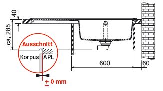 - Arbeitsplattenstärke: mind. 30mm