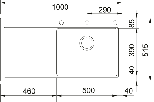 - Spülenmaß: 1.000x515 mm