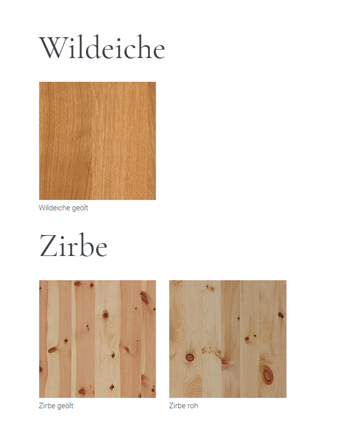 - 2x Holztüren geölt oder roh (nur bei Zirbe möglich)