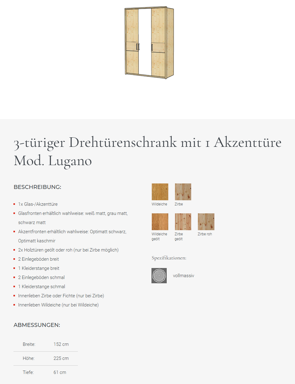 Hoteleinteilung für Drehtürenschrank Lugano wahlweise in Zirbe, Fichte oder Wildeiche wird zerlegt geliefert