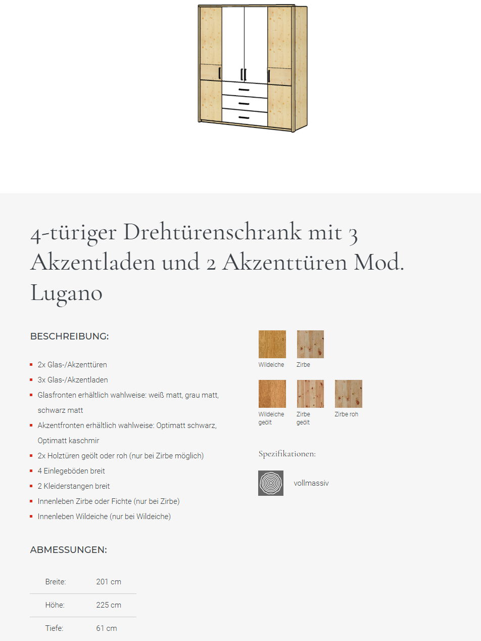- 2x Holztüren geölt oder roh (nur bei Zirbe möglich)