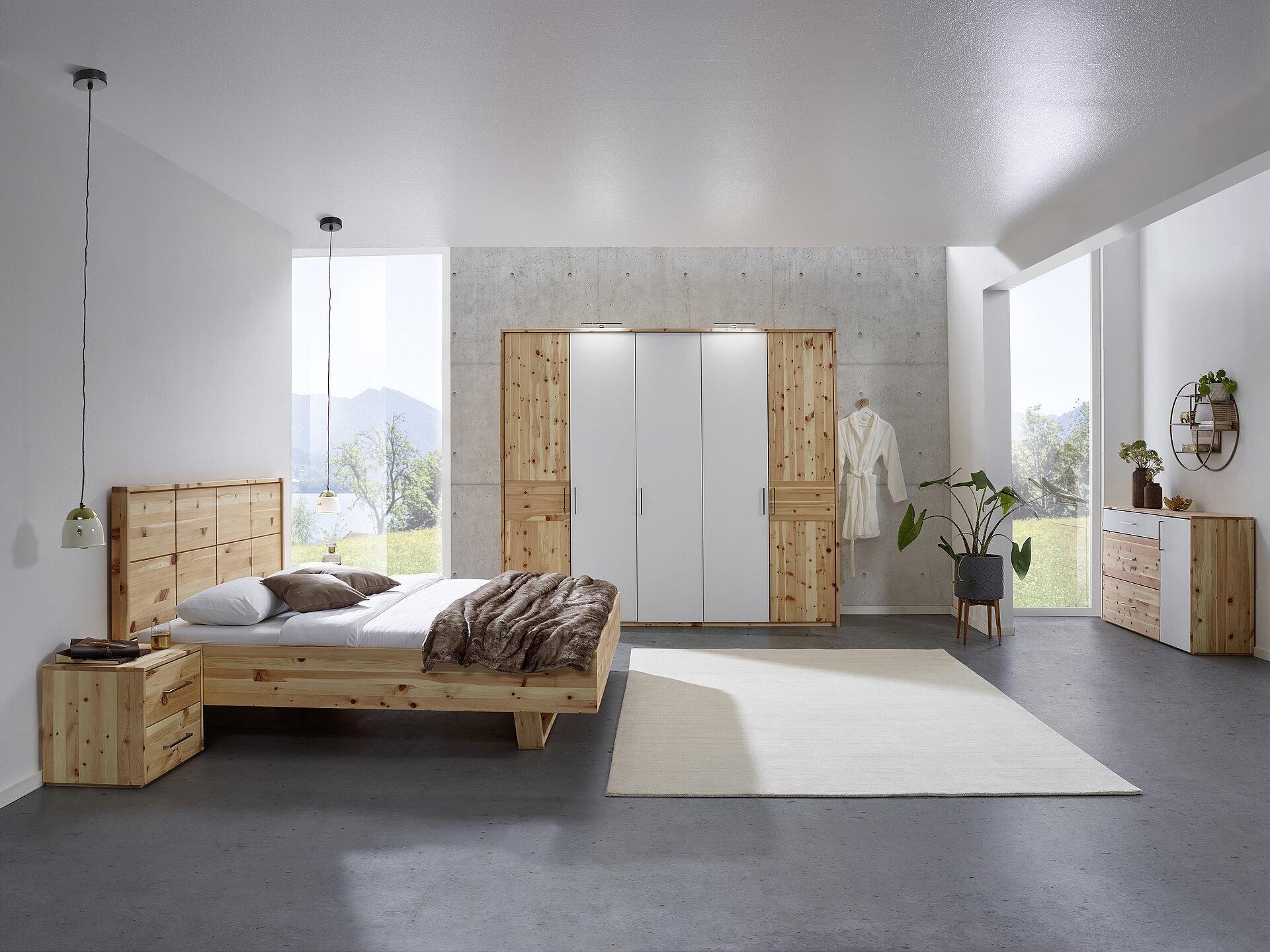 Beschreibung:2x Glas-/Akzenttüren3x Glas-/AkzentladenGlasfronten erhältlich wahlweise: weiß matt, grau matt, schwarz mattAkzentfronten erhältlich wahlweise: Optimatt schwarz, Optimatt kaschmir2x Holztüren geölt oder roh (nur bei Zirbe möglich)4 Einlegeböden breit2 Kleiderstangen breitInnenleben Zirbe oder Fichte (nur bei Zirbe) Innenleben Wildeiche (nur bei Wildeiche)Abmessungen:Breite:201 cmHöhe:225 cmTiefe:61 cm