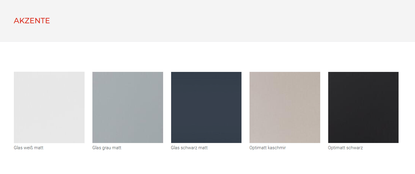 - Glasfronten erhältlich wahlweise: weiß matt, grau matt, schwarz matt