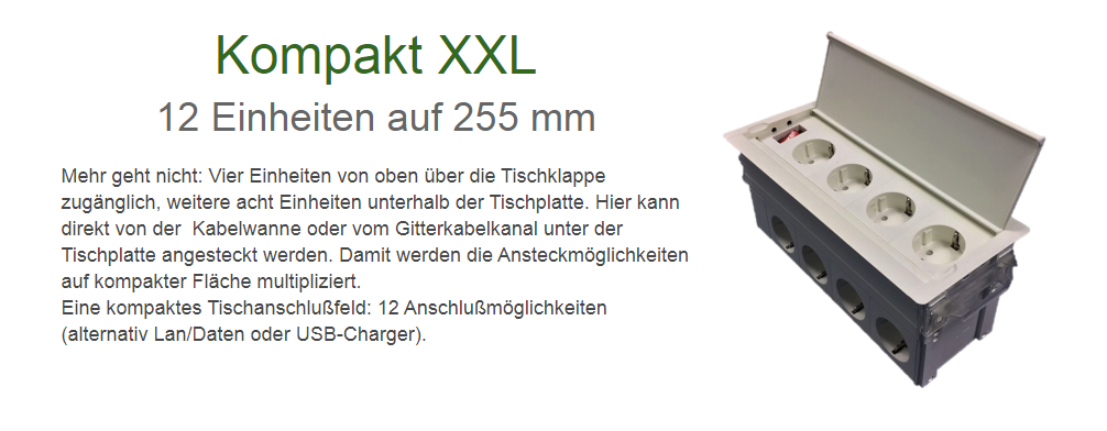 Downloads zu "Kompakt XXL 4 Schuko für mobile Geräte auf der Tischoberfläche und 8 Steckdosen für stationäre Gerät"