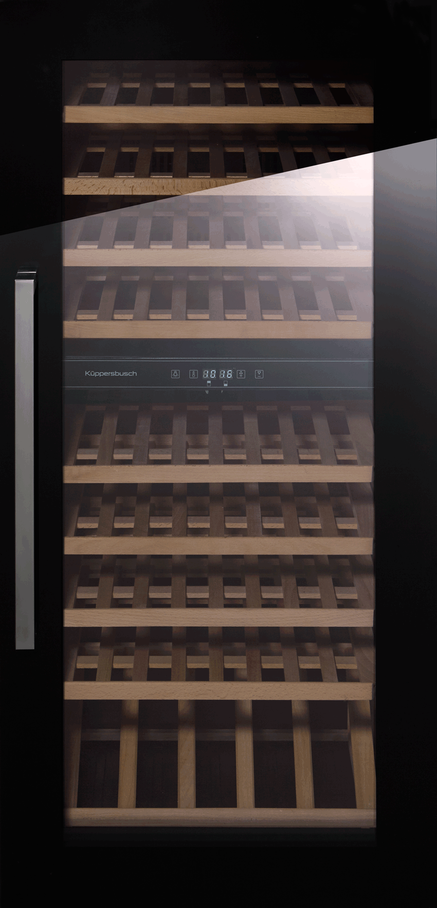 Design Einbau-Weinkühlschrank für die Lagerung von bis zu 60 Flaschen (oben: Flaschenhöhe 365 mm, Flaschenhöhe unten: 315 mm, bis zu 76 mm Ø)Über das integrierte Wi-Fi Modul mit der CASO-App von praktisch überall steuerbarFür jede 122er-NischenhöheGrifflose, elegante Push-to-open TürsteuerungSoft-Close Hettich Scharniere für ein leises und sanftes SchließenLaufruhiger Kompressor sorgt für eine schonende und ruhige WeinlagerungZwei Temperaturzonen individuell, elektronisch einstellbar von 5 bis 20 °C (41 bis 68 °F)Aktive Lüftung für eine gleichmäßige Temperaturverteilung3-lagiges Isolierglas mit UV-Filter für optimalen AromaschutzTüralarm warnt bei Temperaturverlust durch geöffnete TürSensor-Touch Display für beide ZonenLED Temperaturanzeige jeder KühlzonenDie zuschaltbaren weißen Ambiente-LED-Leisten an den Seiten können in 4 Lichtintensitätsstärken eingestellt werden – Stufe 1 (25 %), Stufe 2 (50 %), Stufe 3 (75 %) und Stufe 4 (100 %)Einfaches Entnehmen der Weinflaschen dank Holzlagerböden mit integrierten Teleskopschienen Inkl. Metallgestell zur FlaschenpräsentationAktivkohlefilter für eine optimale LuftqualitätTüranschlag wechselbar