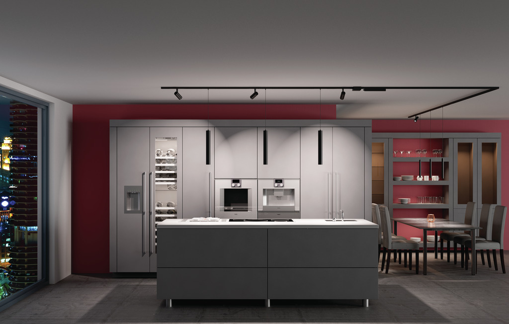 Die Schienenbeleuchtung Easytrack linear Light besticht durch ihr zeitlos-modernes Design in kantiger Raster-Optik. Dank ihrer geringen Bauhöhe von 42,5 mm passt sich das pulverbeschichtete Aluminiumgehäuse harmonisch in die Küchengestaltung ein. Die Modulleuchte ist ideal zur Gestaltung einer leistungsstarken und blendfreien Lichtquelle über einer Kochinsel geeignet. Sie ist kompatibel mit der Easytrack Stromschiene und lässt sich per werkzeugloser Click-in-Montage an gewünschter Stelle integrieren. Die Leistenleuchte ist Bestandteil des innovativen LUMICA® LIC LED-Systems und kann bequem über eine passende Fernbedienung per Smartphone-App oder über Sprachbefehl gesteuert werden. Dann kann stufenlos zwischen den Lichtfarben Warmweiß und Neutralweiß in einem Bereich von 2.700 K bis 6.000 K variiert werden. Integriert ist zudem eine drahtlose ZigBee 3.0 Funksteuerung. Das Easytrack linear Light ist in unterschiedlichen Längen und Wattleistungen erhältlich. Linear Light für Easytrack Stromschiene. Aluminiumgehäuse pulverbeschichtet.— 48 VDC— stufenlose Regelung der Lichtfarbe von 2700 K warmweiß bis 6000 K kaltweiß— sehr hohe Lichtqualität durch Farbwiedergabe-Index > 90— max. 144 Lumen/Watt bei 6000 K kaltweiß— starkes blendfreies Licht (optische Linsen) in moderner Raster-Optik— ideal zur Beleuchtung von Arbeitsflächen (z. B. Kochinsel)— mit integrierter ZigBee 3.0 Steuerung Dieses Produkt enthält eine Lichtquelle der Energieeffizienzklasse D.Werkzeuglose Click-In Montage in die Schiene. Wird über Magnet gehalten oder durch zusätzliche mechanische Verriegelung!