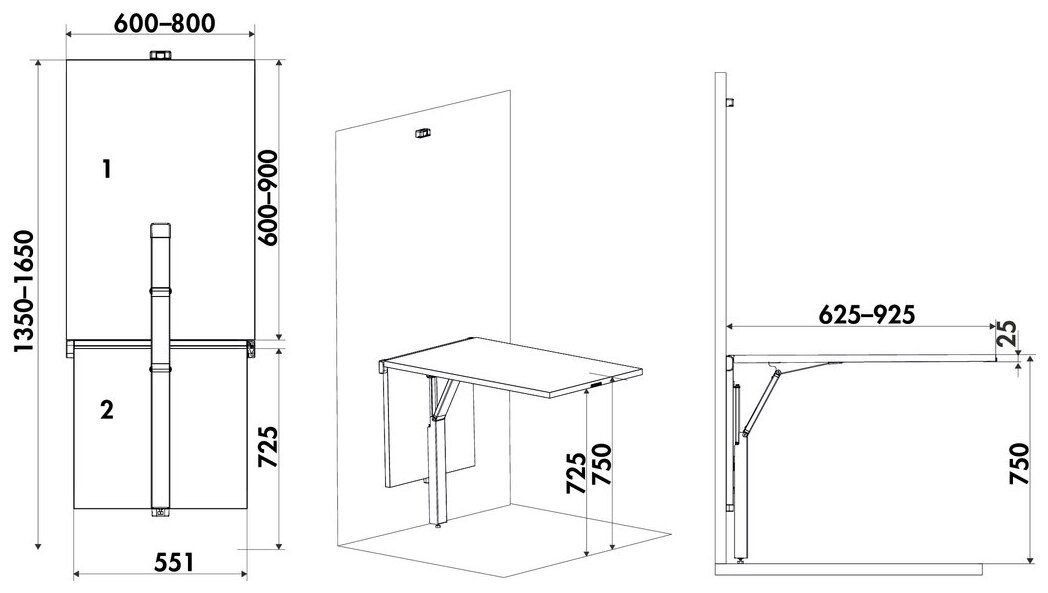 Klapptischbeschlag. Ohne Platten. Für Plattenbreite 600–800 mm.