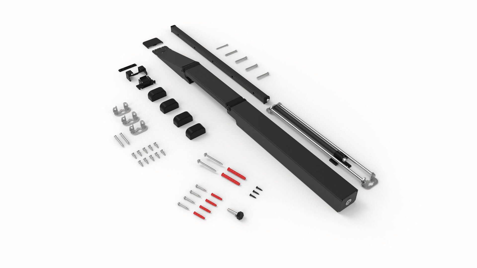 Kindersicherer Bedienkomfort: Der Klapptischbeschlag TopSwing sorgt auf platzsparende Weise für eine flexible Tischplatte, die sich leicht mit nur einer Hand absenken lässt. Die Platte gleitet von ihrer senkrechten Position an der Wand sanft herunter, wobei der Auslösepunkt so hoch platziert ist, dass kleine Kinder ihn nicht erreichen können. Beim Öffnen fungiert der Beschlag auch als Tischbein. Dies garantiert Beinfreiheit und eine optimale Stabilität.