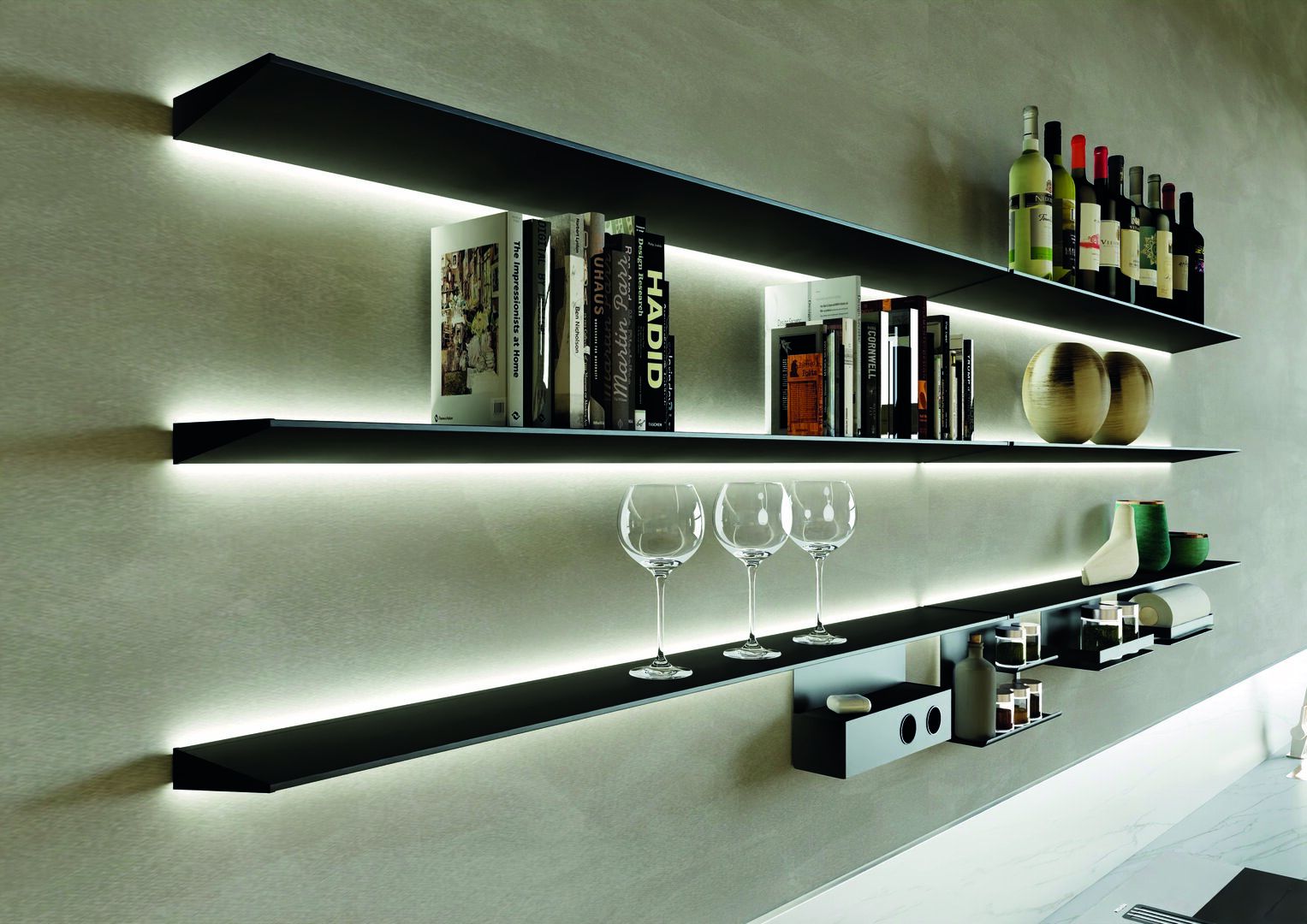 Mit dem ACCOMODA® transFORM Aufsatzregal für die Küchenreling werden auf eine elegante Art zusätzliche Ablagemöglichkeiten geschaffen. Optisch überzeugt es durch seine klare Formgebung. Identisch zu allen weiteren Funktionselementen der Serie sind die pulverbeschichteten Oberflächen in einem edlen Mattschwarz gehalten. Die Montage des Wandregals innerhalb des Relingsystems gestaltet sich denkbar einfach. Im tragenden Grundprofil sind beidseitig Nuten für die Aufnahme moderner 8 mm LED Stripes vorhanden, um eine besondere Lichtstimmung zu erzeugen. Aufsatzregal. Integration an das transFORM Profil Set.— schwarz matt, pulverbeschichtet— beidseitige Nut im Grundprofil zur Aufnahme von 8 mm LED Stripes— einfache und schnelle Montage— Tragkraft ca. 50 kg/qm