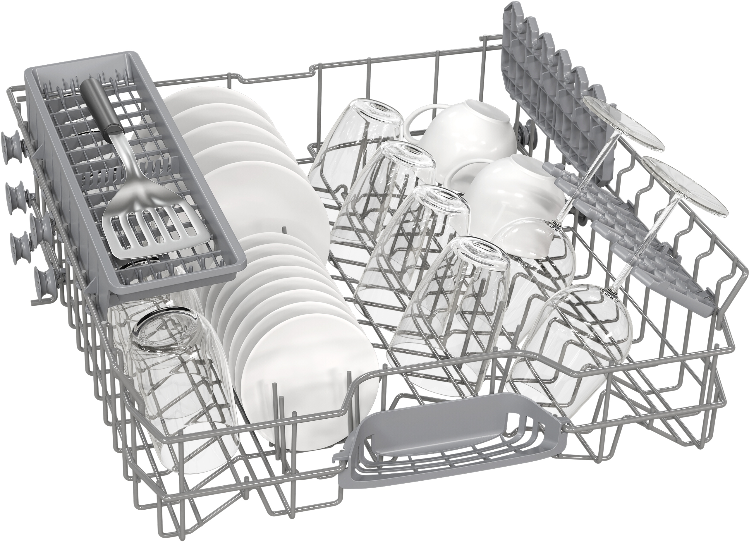 Flex I Korbsystem: flexible Elemente im Unterkorb und Rack Matic im Oberkorb für ganz praktische Beladung.