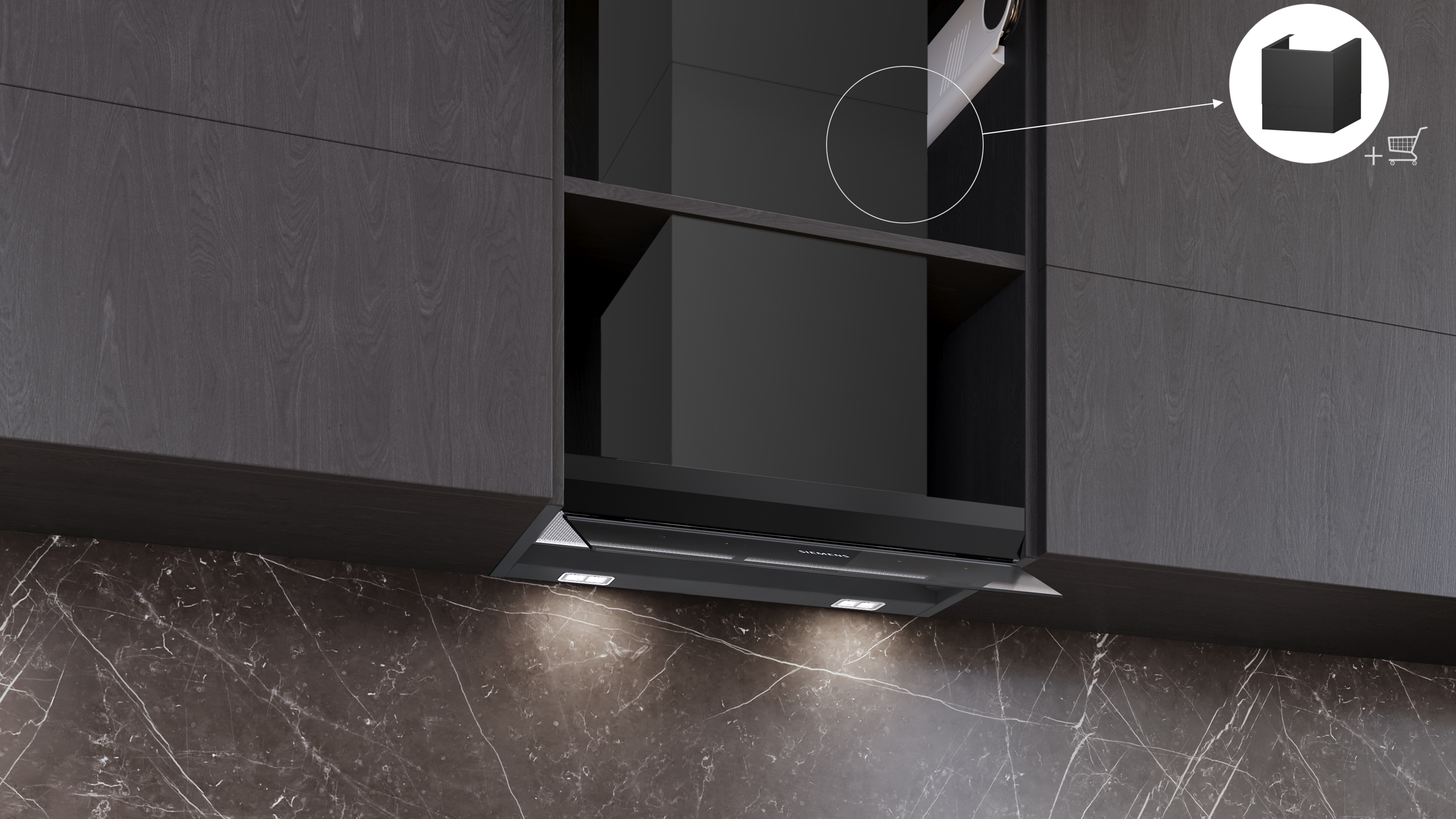 - Für den Einbau in höhere Oberschränke sind Kaminverlängerungen als optionales Zubehör erhältlich.