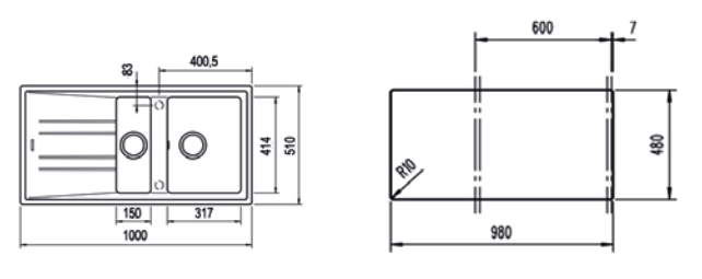 Einbauspüle ab 60 cm Unterschrank reversibel Elegante Spülenreihe im traditionellen und zeitlosen Design Mit Sanitized® behandeltes Material für eine besonders hygienische Oberfläche Zeitloses und dynamisches Design mit parallel auslaufenden Entwässerungsrillen auf der Abtropffläche. Dank des großen Beckenradius besonders reinigungsfreundlich. Das Material Fragranite ist besonders hygienisch und leicht zu reinigen. Inklusive passendem Abtropfbecken aus rostfreiem Edelstahl für das Restebecken. Planungshinweise: Spülenmaß: 970x500mm Becken: 362x442x210mm und 115x310x115mm Arbeitsplattenstärke: mind. 30mm Ausschnitt: 950x480mm R27 Armatur und Überlauf müssen vor dem Spüleneinbau installiert werden Lieferumfang: inkl. Ablaufgarnitur & Fragranitbohrer