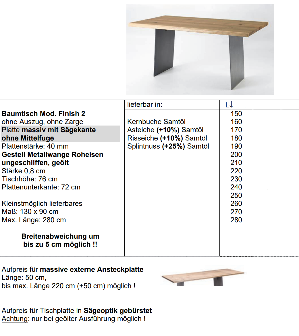 - Tischplatte ohne Mittelfuge