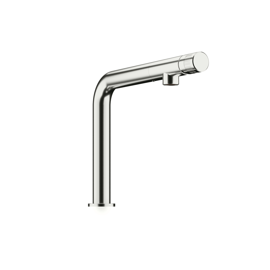 Einhebelmischer. Mit schwenkbarem Auslauf, integrierter Kopfsteuerung und Keramikkartusche.
