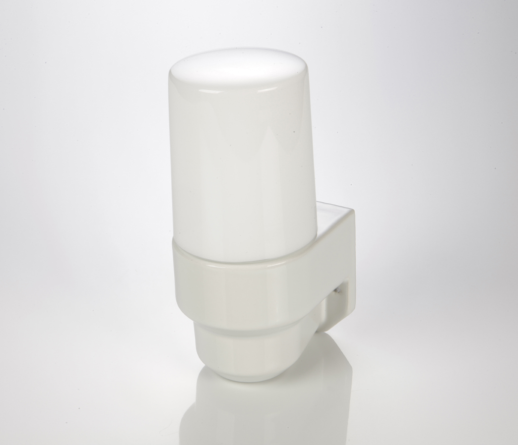 Leuchte für Dampfbad und Sauna IP55-wassergeschützt, max. zulässige Umgebungstemperatur 125°C, mit mattierter Glaskuppel und KeramikSchraubsockel für Glühbirnen mit Fassung E14 - bei Deckenmontage bis max. 40 W (Halogenbirnen max. 28 W), Spannung 230 V/50 Hz Maße: B75 x H170 x T90 mm Gew. ca. 770 gr.