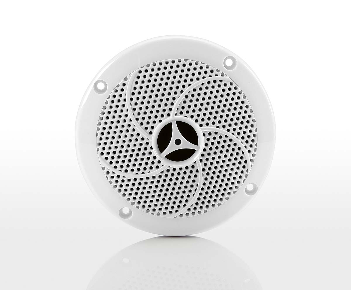 Lautsprecher bis max. 70°C oder 120°C weiß, Deckenblende Ø 135 mm, Montageausschnitt: Ø ca. 100 mm, Tiefe 46 mm für Sauna, Dampfbad und Infrarotkabine, rel. Luftfeuchtigkeit 100 %, IP55-wassergeschützt, meerwasserbeständig, Belastbarkeit max. 20 Watt, 4 Ohm, für Stereoqualität 2 Lautsprecher einsetzen