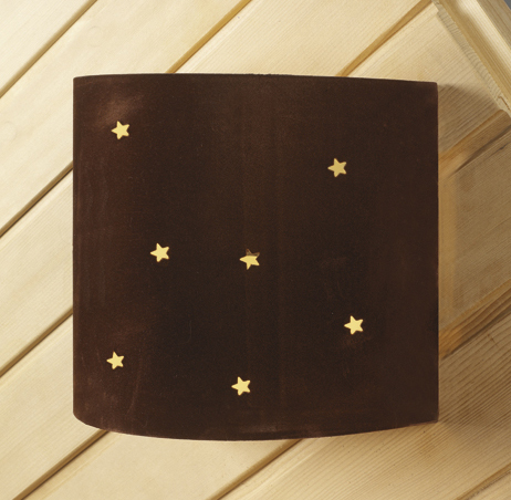 Blendschirm Aluminium beflockt Sichtseite dunkelbraun beflockt als Berührungsschutz, mit ausgestanzten Sternen, einsetzbar für Wand- oder Eckmontage, Auslieferung erfolgt als Blech - dieses kann vor Ort in gewünschter Biegung über den Leuchten Art.-Nr. 8522, 82230 oder 85210 befestigt werden, durch Einhängelaschen kann der Blendschirm fest angeschraubt oder zum schnellen Wechseln des Leuchtmittels ohne Werkzeug nur eingehängt werden. Maße: ca. B400 x H200 x T0,7 mm Gew. ca. 120 g