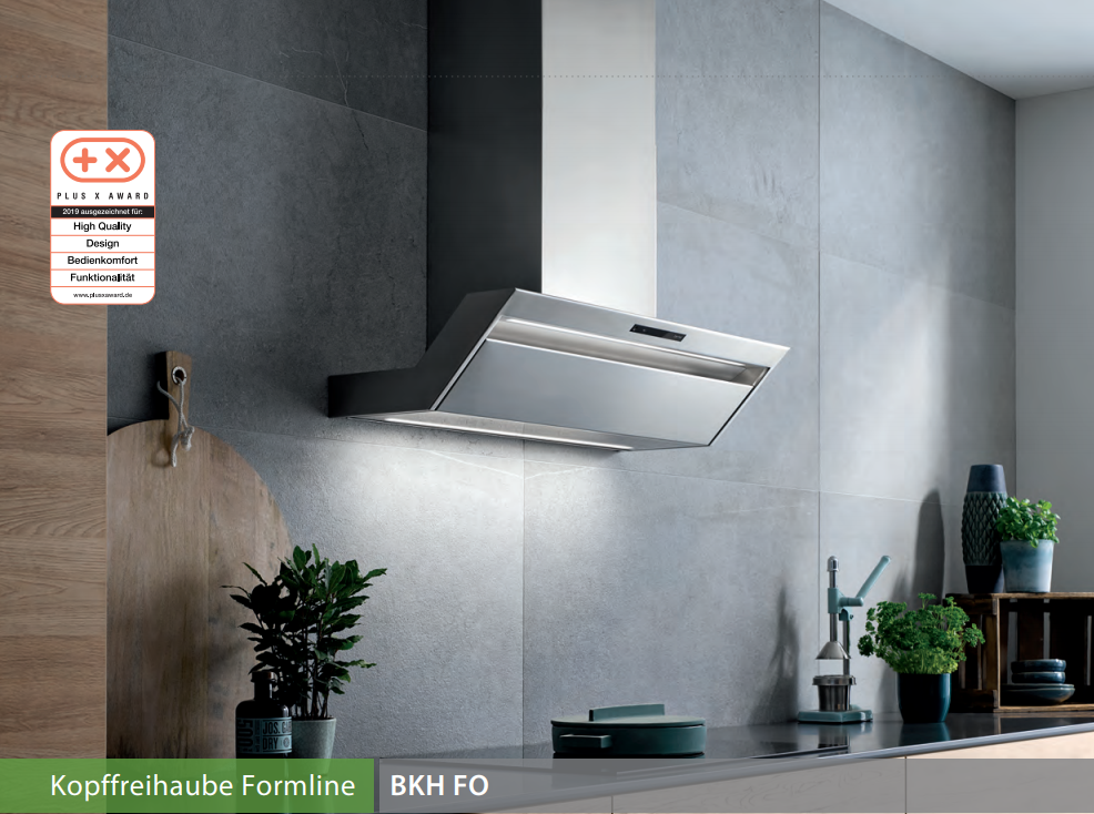Beim Design der berbel Kopffreihaube Formline verschmelzen industrielle Eleganz und Funktionalität auf einzigartige Weise. Die spezielle, kantige Form und höchste Kunst bei der Metallverarbeitung charakterisiert die Silhouette der Dunstabzugshaube. Ein Freigeist mit der Auszeichnung Plus X Award 2019. Wer sich für die berbel Kopffreihaube Formline entscheidet, erhält einen hochwertige Dunstabzug mit besten Qualitäten.