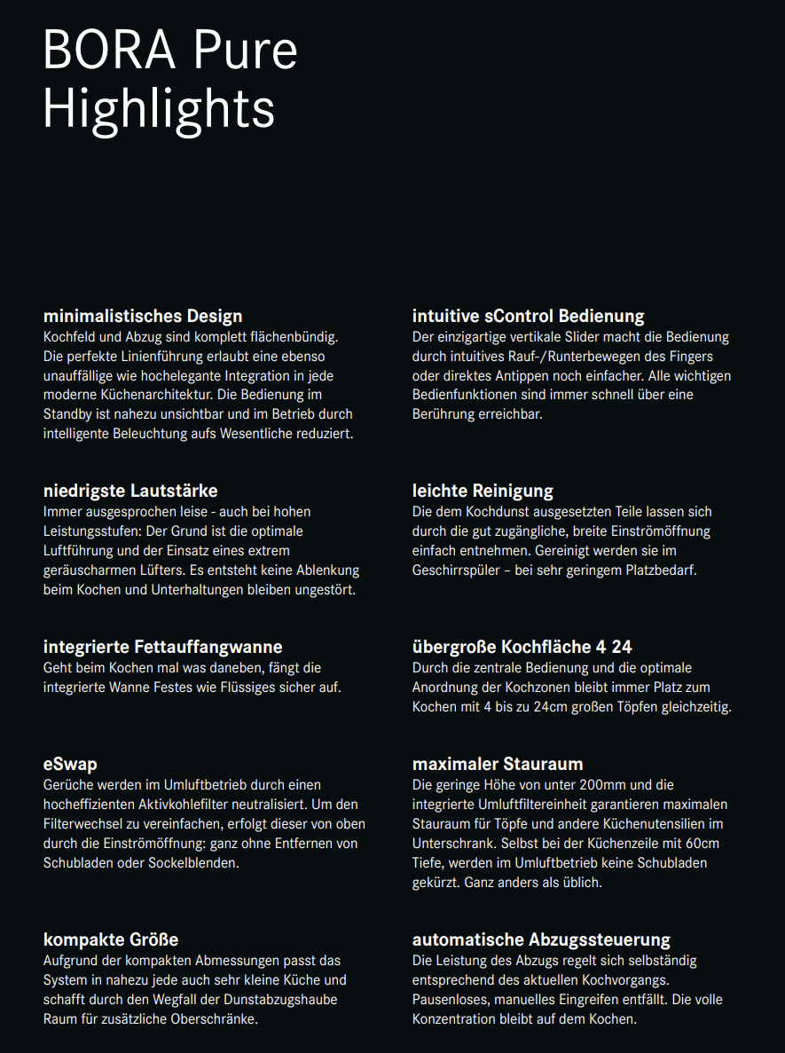 • Für übertiefe Unterschränke • passendes Zubehör für Bora Pure