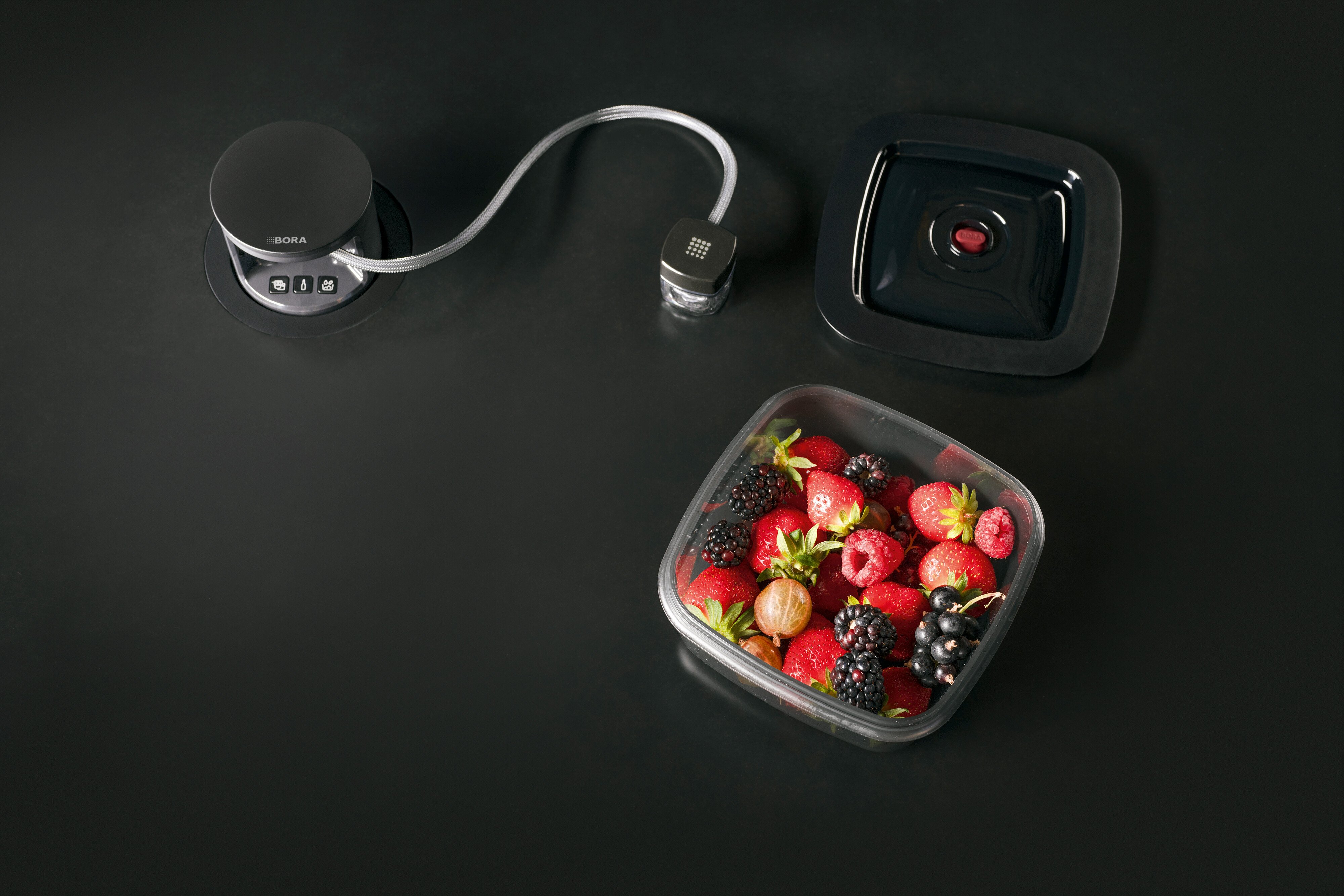 Einzigartiges Einbaukonzept Extra schnelles Marinieren Flüssigkeiten länger haltbar machen Pop-Up Einheit mit automatischer On/Off-Funktion Ausziehbarer Vakuumierkopf (400mm) 3 Funktionstasten für verschiedene Vakuumierprogramme Audiovisuelles Bedienkonzept