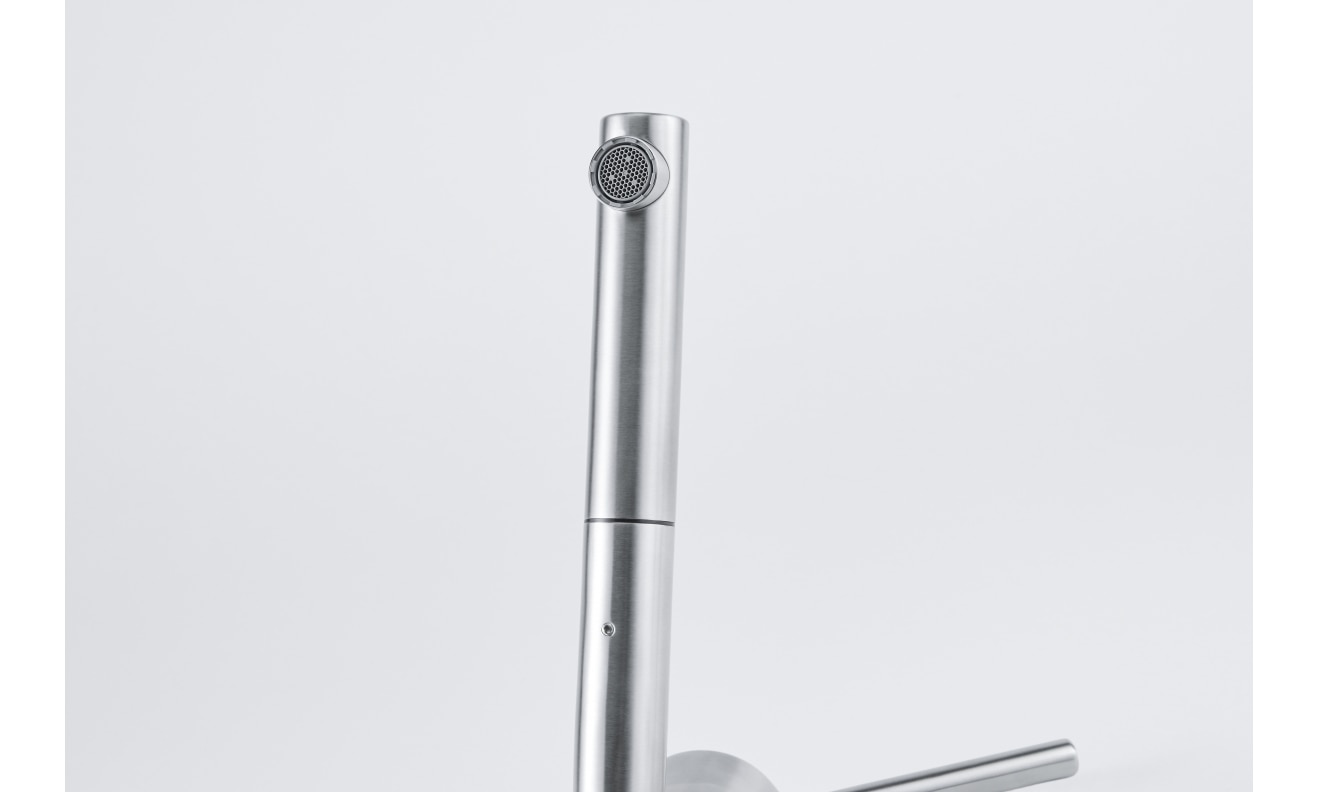 Hochdruck oder Niederdruck wählbar massiv Edelstahl Umlegbare massiv-Edelstahl Armatur Ausgestattet mit einem Laminar-Perlator Fugenloser Armaturenkörper, dadurch besonders reinigungsfreundlich Wasserspar-Kartusche mit Volumenschwelle Planungshinweise: Auslaufmenge Normalstrahl: 12 l/min. (3 bar) Flexible Anschlussschläuche mit 750 mm Länge und 3/8 Mutter für leichte und sichere Montage Wasserspar-Kartusche mit Volumenschwelle DVGW Zertifizierung vorgesehen