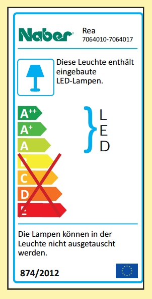 - Diese Leuchte enthält eingebaute LED-Lampen mit den Energieklassen A++ bis A.