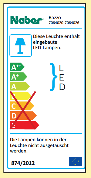- Diese Leuchte enthält eingebaute LED-Lampen mit den Energieklassen A++ bis A.