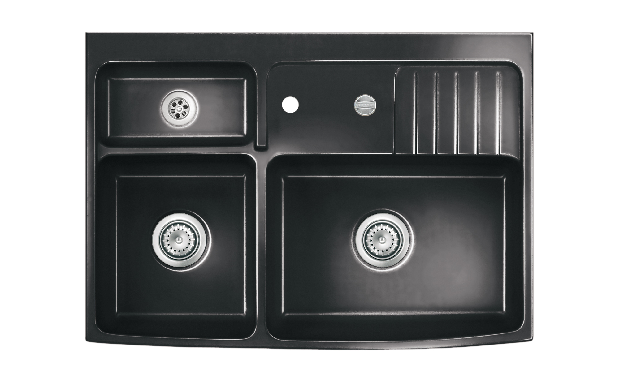 Der traditionelle Spülstein als Bestandteil des modernen Landhaussils: Die Centra-Elemente sind ein Muss für alle, die die Extravaganz lieben und an alten Werten ihre Freude haben. Die Centra 90 ist für den Einbau in einen 90er-Schrank geeignet und bietet gegenüber ihrer kleineren Schwester zwei weitere Becken zum Vorbereiten und Spülen. Spülenelement. Achtung: Nur zur Montage zwischen zwei Schränken geeignet. Die bearbeitete Rückseite ist nicht geschlossen. incl. Ablaufgarnitur mit Excenterbetätigung und Drehgriff Edelstahl glänzend rund Ø 45 mm für Arbeitsplattentiefe 60 cm Viele attraktive Farbvarianten stehen zur Verfügung! Armaturbohrung O und Excenterbohrung O vorhanden. Durchmesser ca. 35 mm. Kälte- u. Hitzeresistent: Feinsteinzeug, das aus dem Ofen kommt, kann nichts schocken. Es hat eine besonders hohe Temperaturwechselbeständigkeit.Säureresistent: Unverwüstlich hält die Keramik allen haushaltsüblichen Chemikalien stand. Selbst farbintensive Säfte wie der der roten Beete hinterlassen keine Spuren.Hygienisch: Auf den glatten Oberflächen der Keramik bleibt nichts lange haften. Sie sind mühelos zu reinigen, geschmacks- und geruchsneutral und absolut hygienisch.Schnittfest: Die KeraDomo-Küchenkeramik ist die perfekte Unterlage zum Schneiden und überdies kratzfest.Schlag- u. Stoßfest: Feinsteinzeug ist hart im Nehmen. Auch, was die Schlag- und Stoßfestigkeit anbelangt. Die besondere Widerstandsfähigkeit macht Keradomo-Küchenkeramik zum idealen Material für alle Bereiche, die extremen Ansprüchen gewachsen sein müssen. Denn Systemceramik ist ein Schwesterprodukt der Laborkeramik, für die das Feinsteinzeug zwingend vorgeschrieben ist. Deshalb gibt es auf die KeraDomo-Küchenkeramik fünf Jahre Garantie.