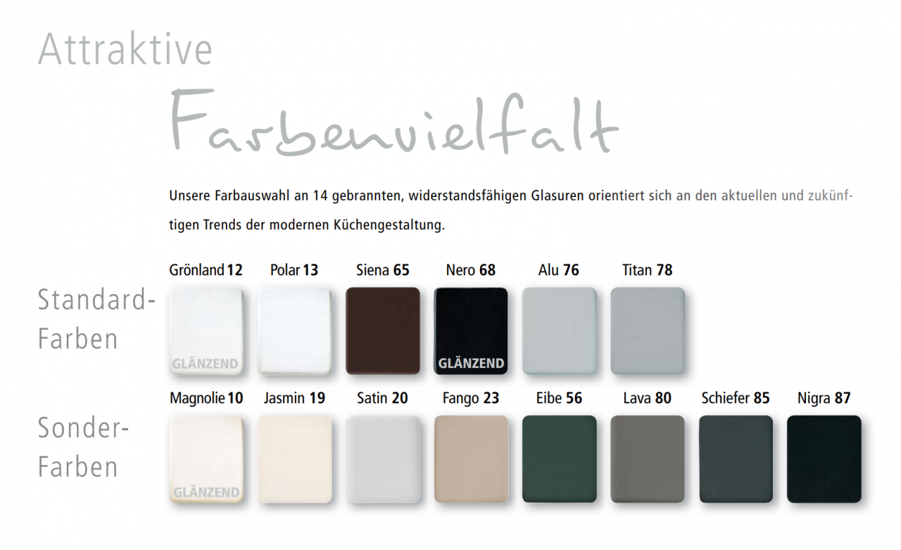 14 attraktive Farbvarianten stehen zur Verfügung!